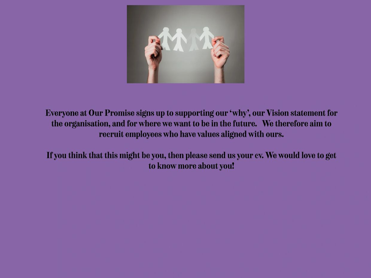 Our Promise is a new but also expanding company with new roles anticipated in the future.